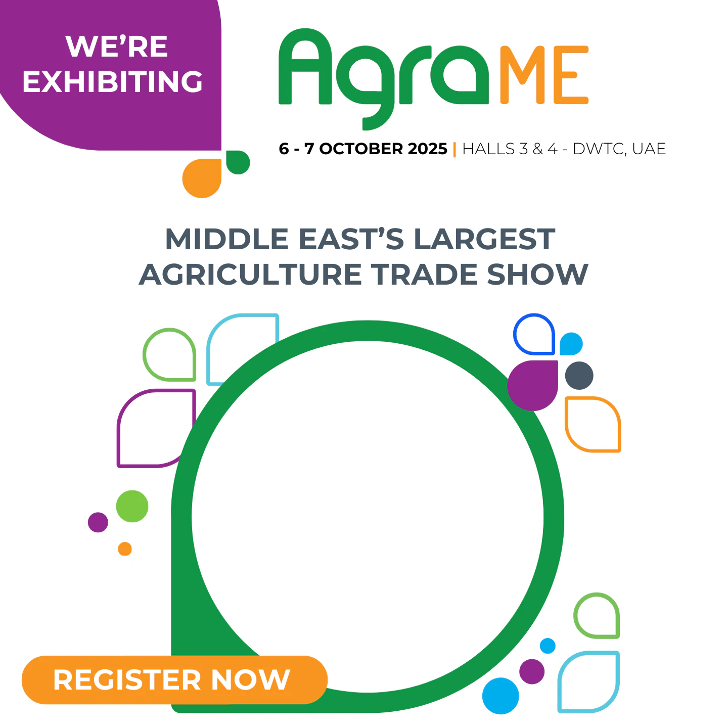 Proud to be exhibiting at #AgraME2025! Join [Your company name] at the premier event for the agricultural industry in the Middle East, 6-7 October 2025 at Dubai World Trade Centre.