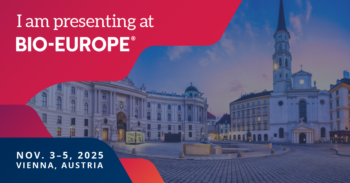 [Your company name] is presenting at #BIOEurope. Join us in Vienna, Austria, November 3–5, 2025, to attend our presentation and make meaningful connections. Register here: https://bit.ly/4523TwJ