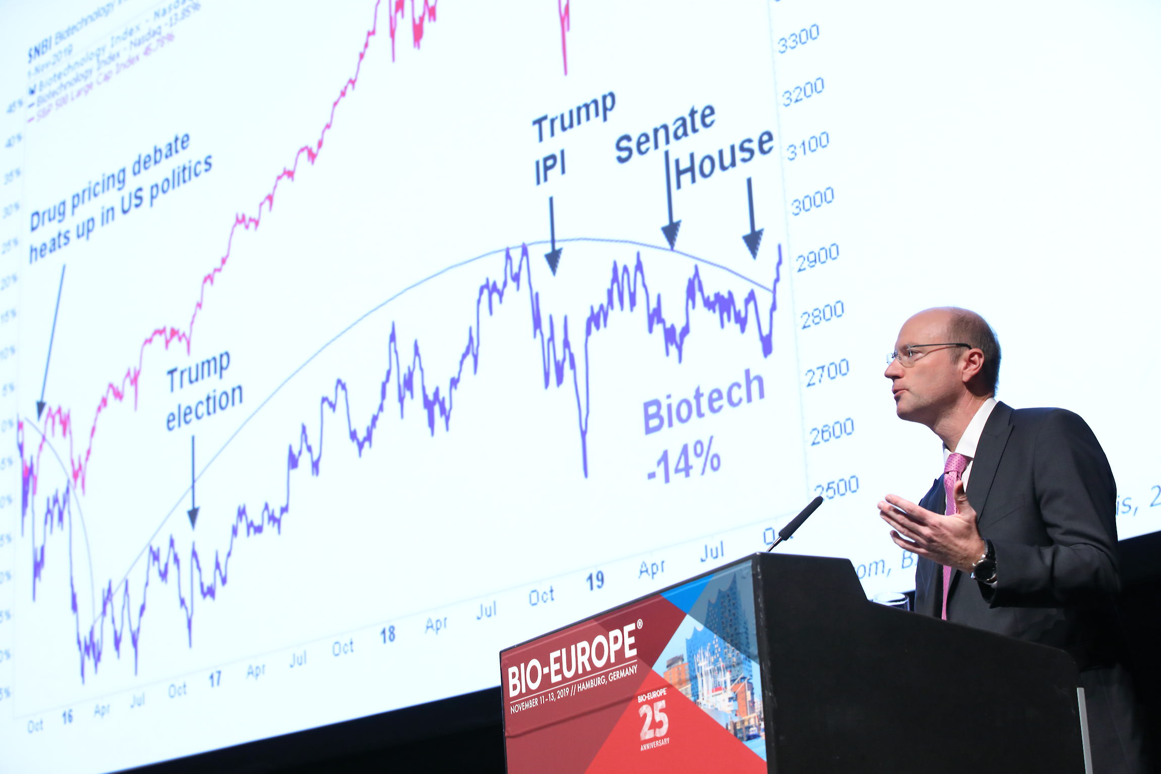 Thomas also spoke about the impact of proposed pricing controls in the US, specifically plans to reference drug prices in the US to those in Europe and Japan. The result, he said, is that the biotech index is down 13 percent over the past four and a half years, when conversations about drug pricing really began. “Things have gone up and down but really never recovered back to those 2015-2016 highs,” Thomas added.