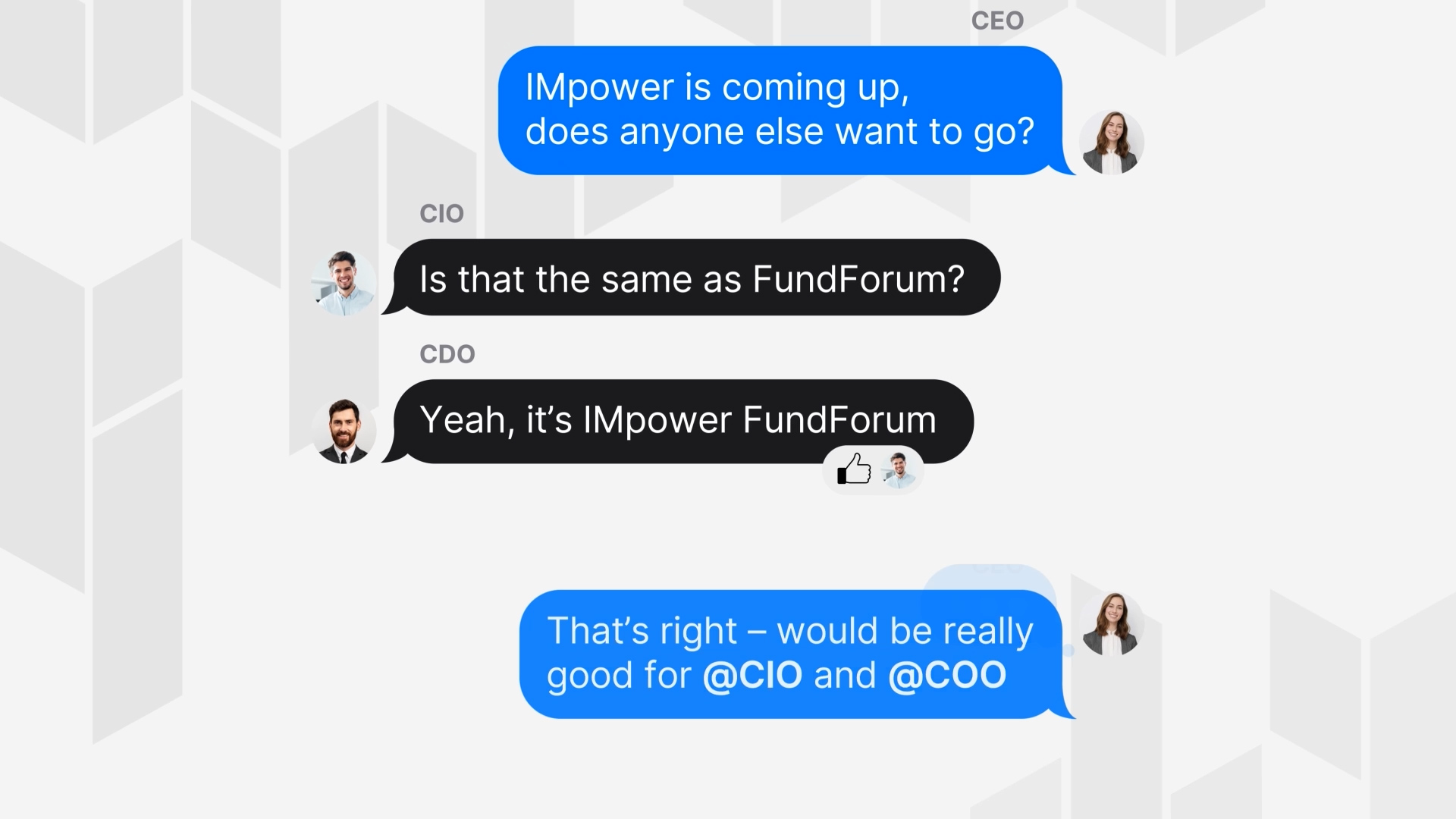 - CEOs, CIOs, COOs and heads of distribution from the world's top asset and wealth management firms