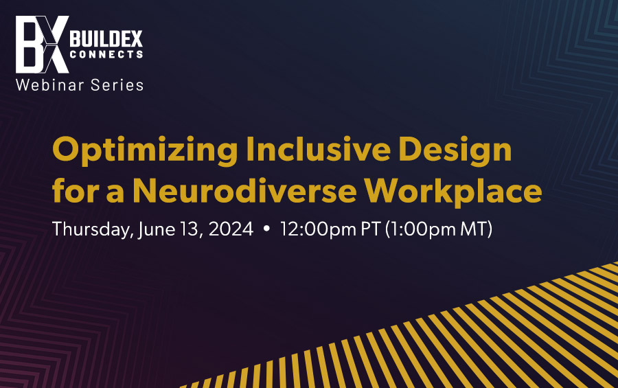 BUILDEX Connects is excited to present our upcoming webinar taking place Thursday, June 13th, from 12:00pm-1:00pm PT, 1:00pm-2:00pm MT, titled Optimizing Inclusive Design for a Neurodiverse Workplace.