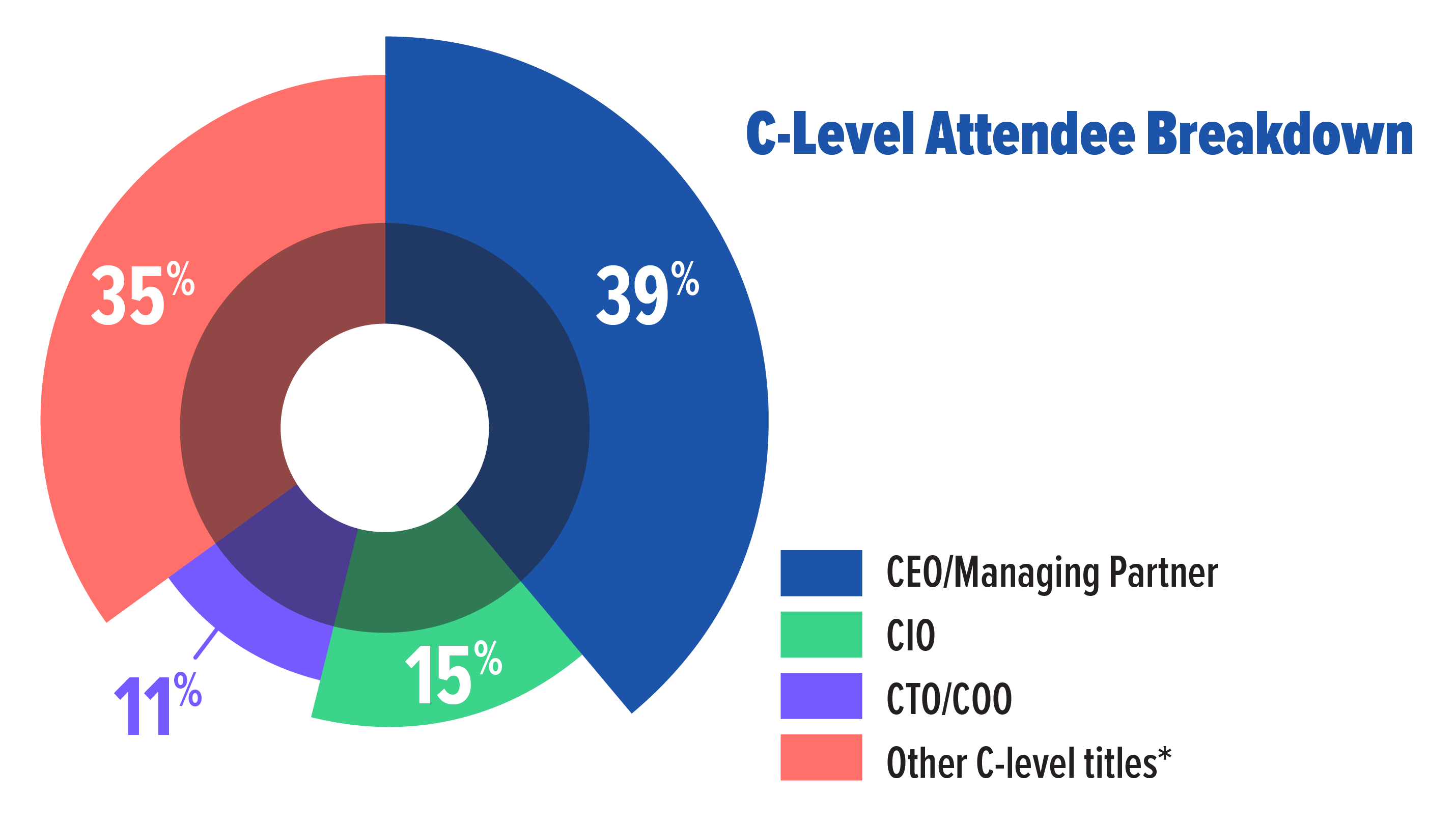 250+ advisor decision makers attended in 2025 including 150+ CEOs and Managing Partners. Wealth Management EDGE brings together CEOs, CIOs, CTOs and COOs together in one place, creating a truly unique, all-in-one networking opportunity.