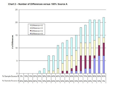 the blended sample compared to 100% of Source A (see Chart 2 ' Number of