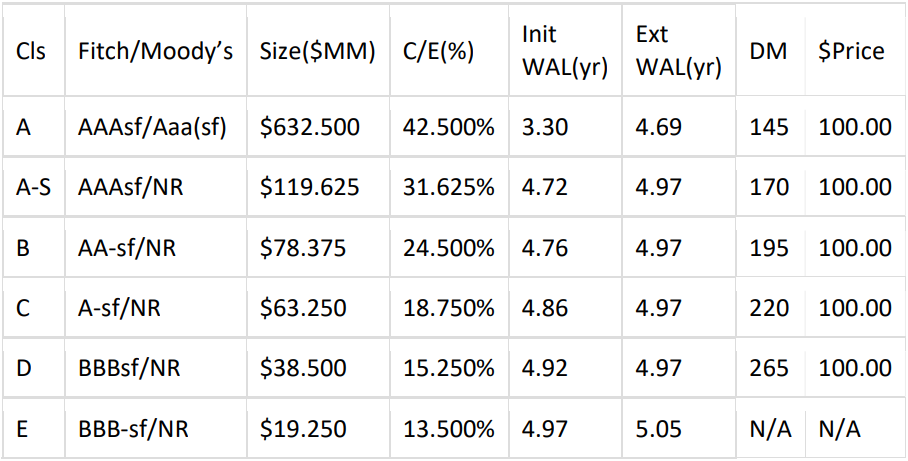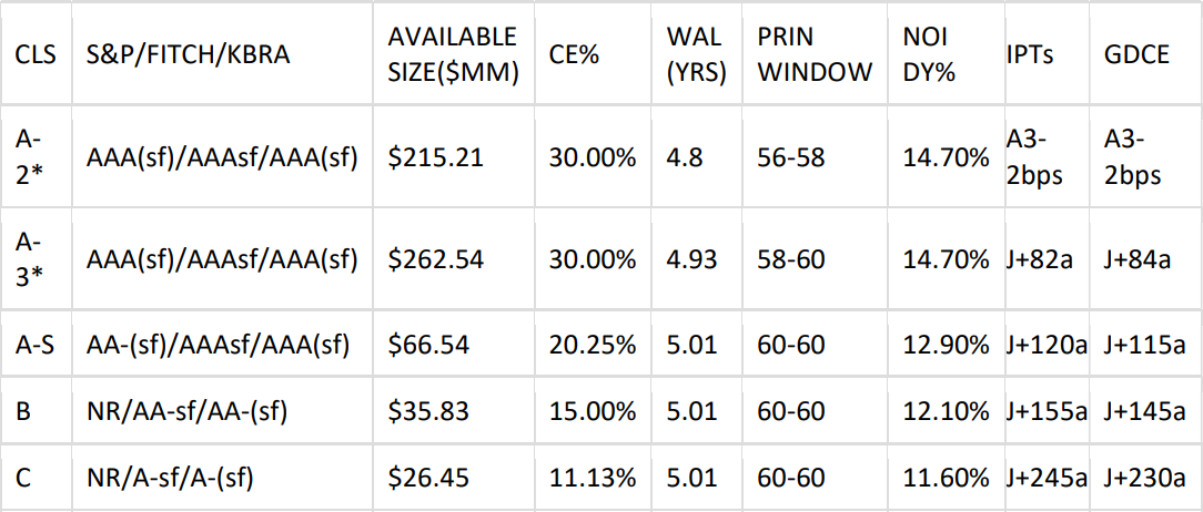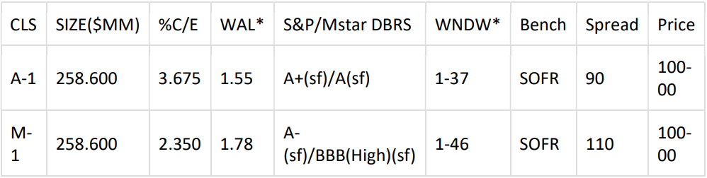 Easy Street Capital has mandated ATLAS SP as Sole Bookrunner & Structuring Agent, and Piper Sandler as CoManager on its upcoming $175MM issuance Residential Transition Loans. The Investor Tape and Investor Presentation have been made available via DealRoadshow). Subject to market conditions, the lead expects to price early next week.