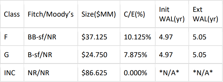 SEC Form ABS-15G: Late Week of October 13th. Pricing Speed: 25% CPR to 4 Year Call (Step-Up Date). Optional Redemption: Earlier of (i) 3 Years and (ii) 30% Pool Factor. Coupon Step-Up: 100 bps Step-Up on Class A-1, A-2 and A-3 after 48 months, subject to NWAC. Interest payable to Class B-3 is available to cover cap carryover amounts on Class A-1, A-1A, A-1B, A-1C, A-1F, A-1IO, A-2 and A-3 after 48 months. A-1F, A-1A, A-1B, and A-1 sizes reflect MAXIMUM offered sizes. The four classes will be sized at pricing to a total of $362.204mm offered. A-1F is a 7.00% Cap Floater and its size will be dependent on total creation. After 48 months, the A-1F will receive the entire Coupon Step-up of 100bps and become an 8.00% Cap Floater. A1IO is an Inverse IO that will be retained by the Retaining Sponsor.