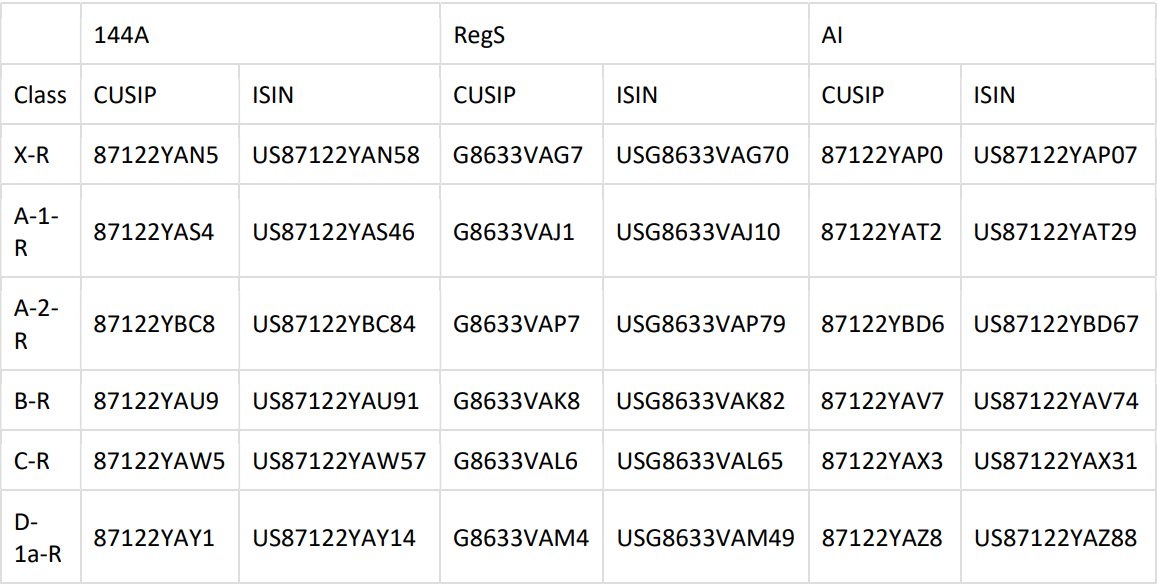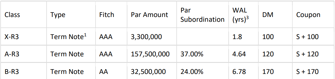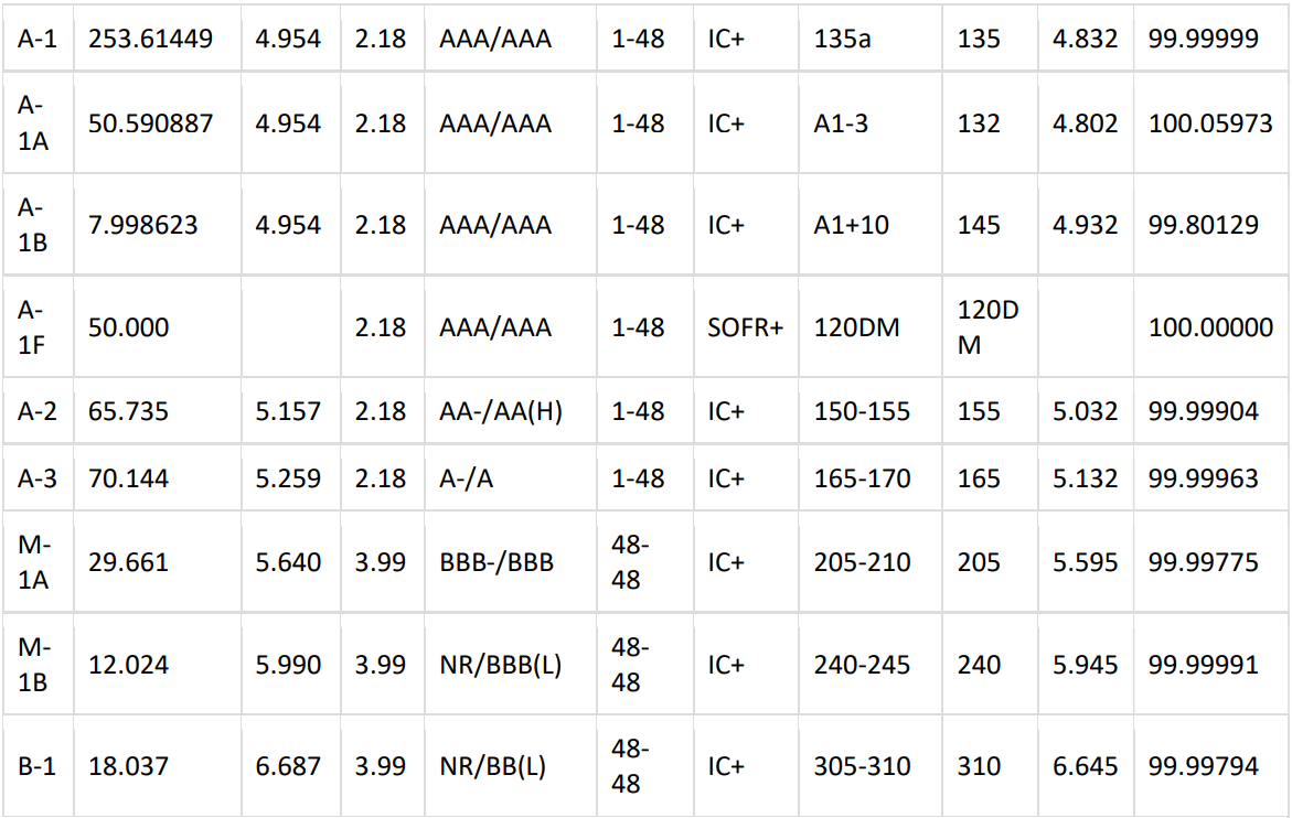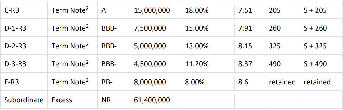 *Combined Class C-1 and Class C-2 into a single Class C-R (floating) for this partial refinancing