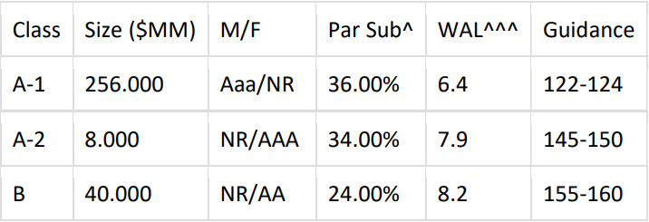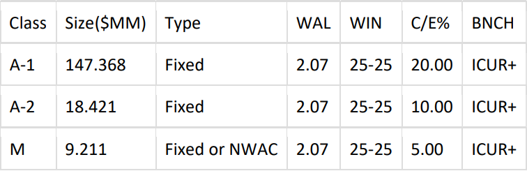 * Classes A-2a and A-2b will be sized to demand. Max A-2b size is 75% of the combined A-2