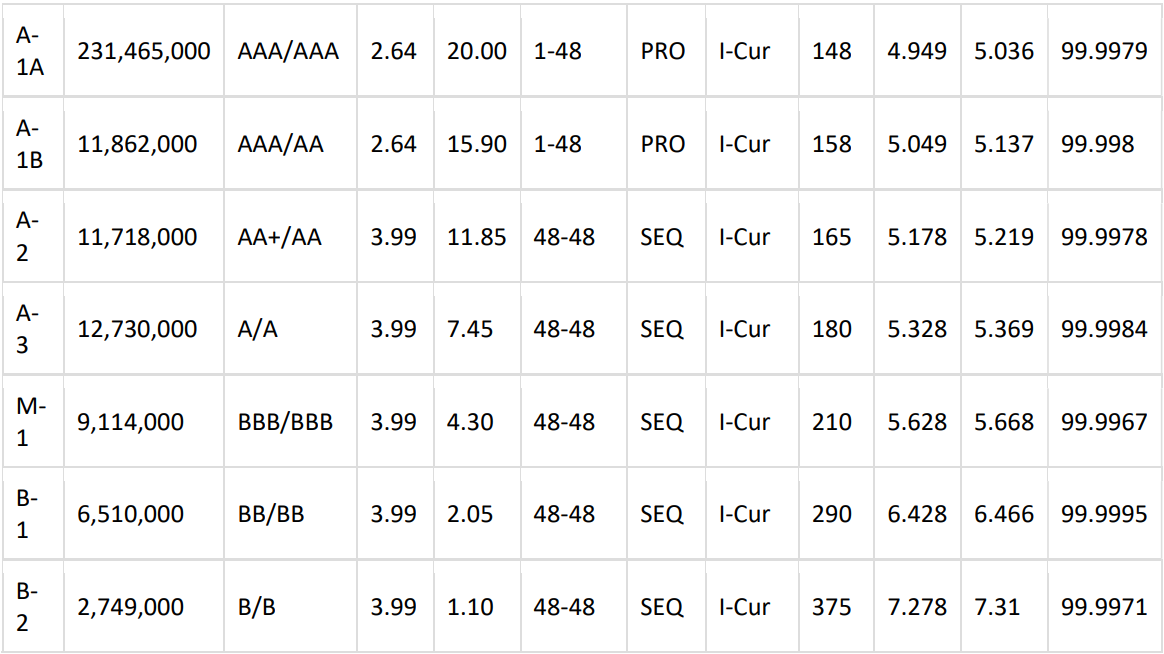 *Sizes subject to change as detailed in the attached Term Sheet. Range of possible available sizes below: A-2: $0 - $215.212mm; A-3: $262.543mm - $477.756mm