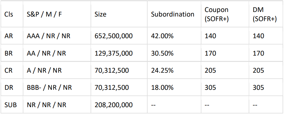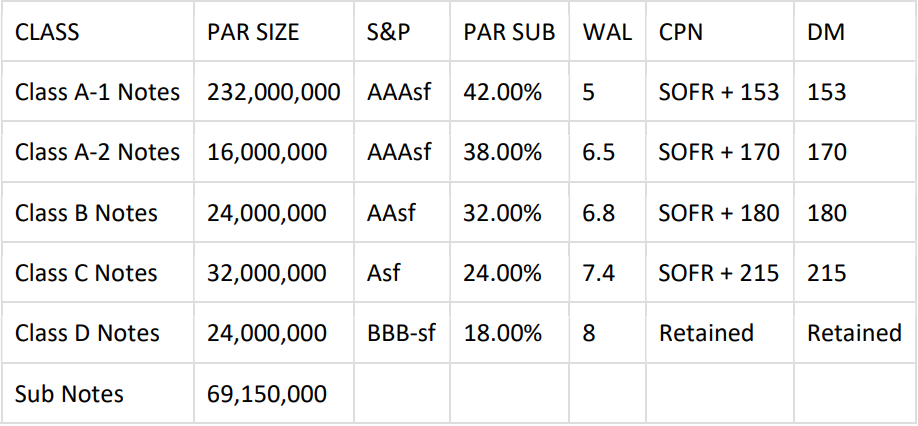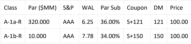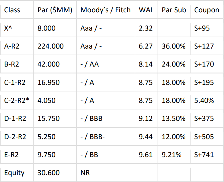 Structure Summary: Managed Transaction with 30-month Reinvestment Period, 30-month Non-Call Period, 180-day Ramp Up Period, O/C Test with 2.0% Cushion and I/C Test of 120%. Risk Retention: Transaction is structured in compliance with US and EU/UK Risk Retention.