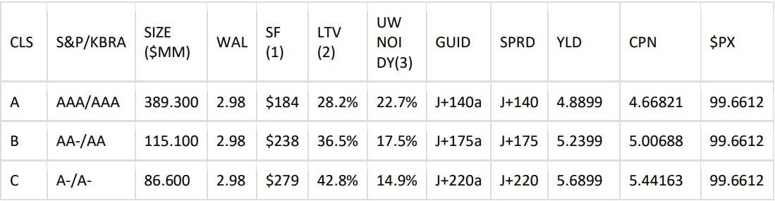 Borrower Sponsor: Sycamore Partners Management, L.P. Whole Loan Amount: $490.0 million. Mortgage Loan Amount: $390.0 million. Whole Loan Rate Type: Fixed. Whole Loan Term: Five-year. Amortization Type: Interest-Only. Whole Loan Cut-Off LTV: 49.7%. Whole Loan UW NCF DY: 12.5%. Whole Loan UW NCF DSCR: 1.71x. Loan Purpose: Acquisition.