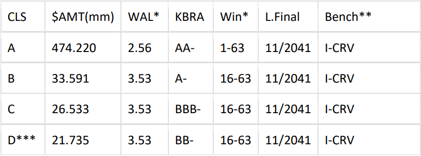 -- [Commercial Equipment Finance (CEFI) 2025-1] $122.363mm Equipment Lease ABS via KeyBanc. (No Grow) Pricing Timeline: Next week. Bill & Deliver: KeyBanc. First Pay Date: 11/17/25. Format: 144a/Reg S. Expected Ratings: DBRS. ERISA: Yes. Ticker: CEFI 2025-1. Min Denoms: $100k by $1k. This is a Rule 144A Private Placement Transaction.