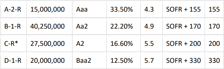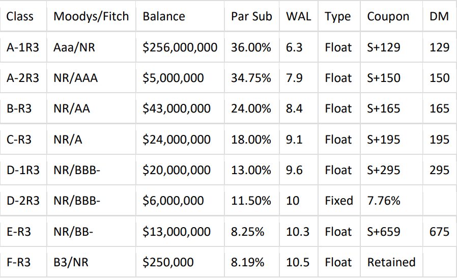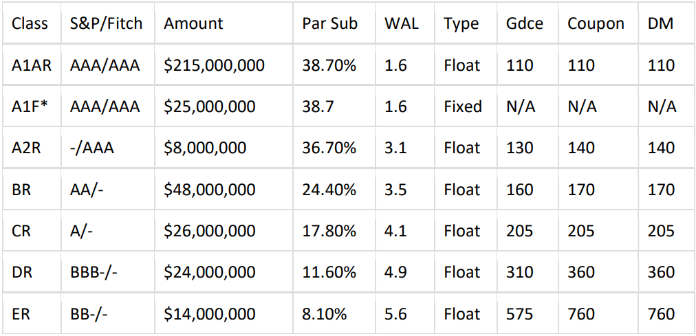 *Combined Class C-1 and Class C-2 into a single Class C-R (floating) for this partial refinancing