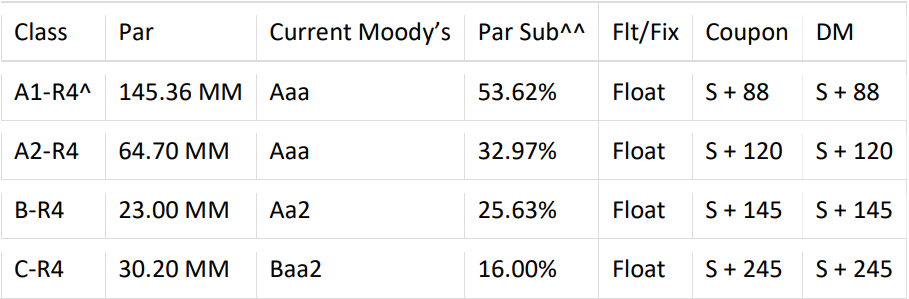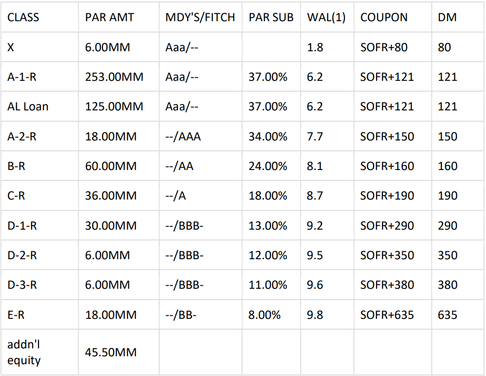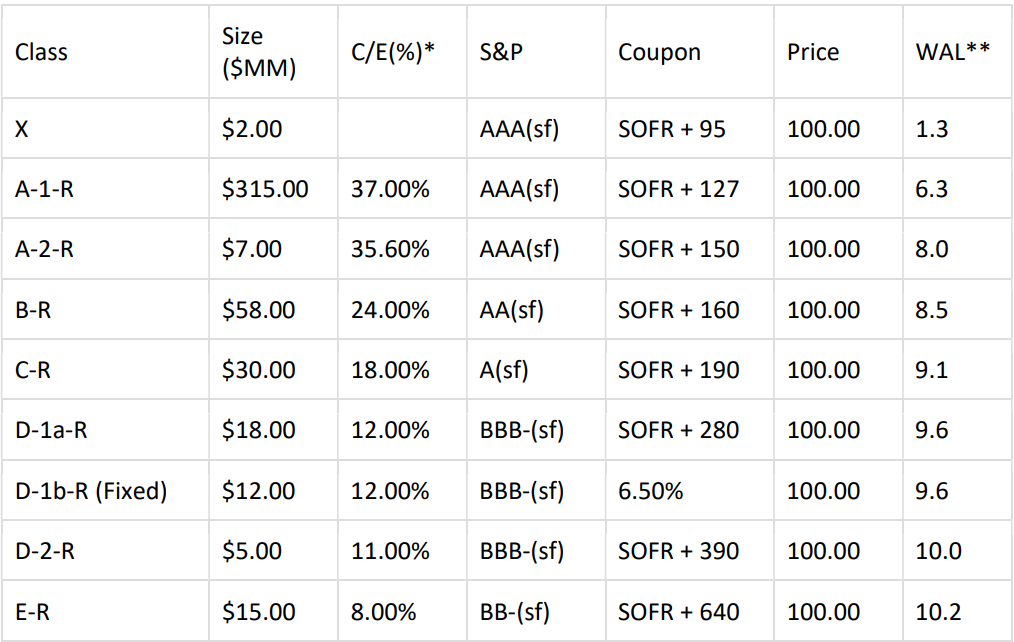 Structure Summary: Managed Transaction with 30-month Reinvestment Period, 30-month Non-Call Period, 180-day Ramp Up Period, O/C Test with 2.0% Cushion and I/C Test of 120%. Risk Retention: Transaction is structured in compliance with US and EU/UK Risk Retention.