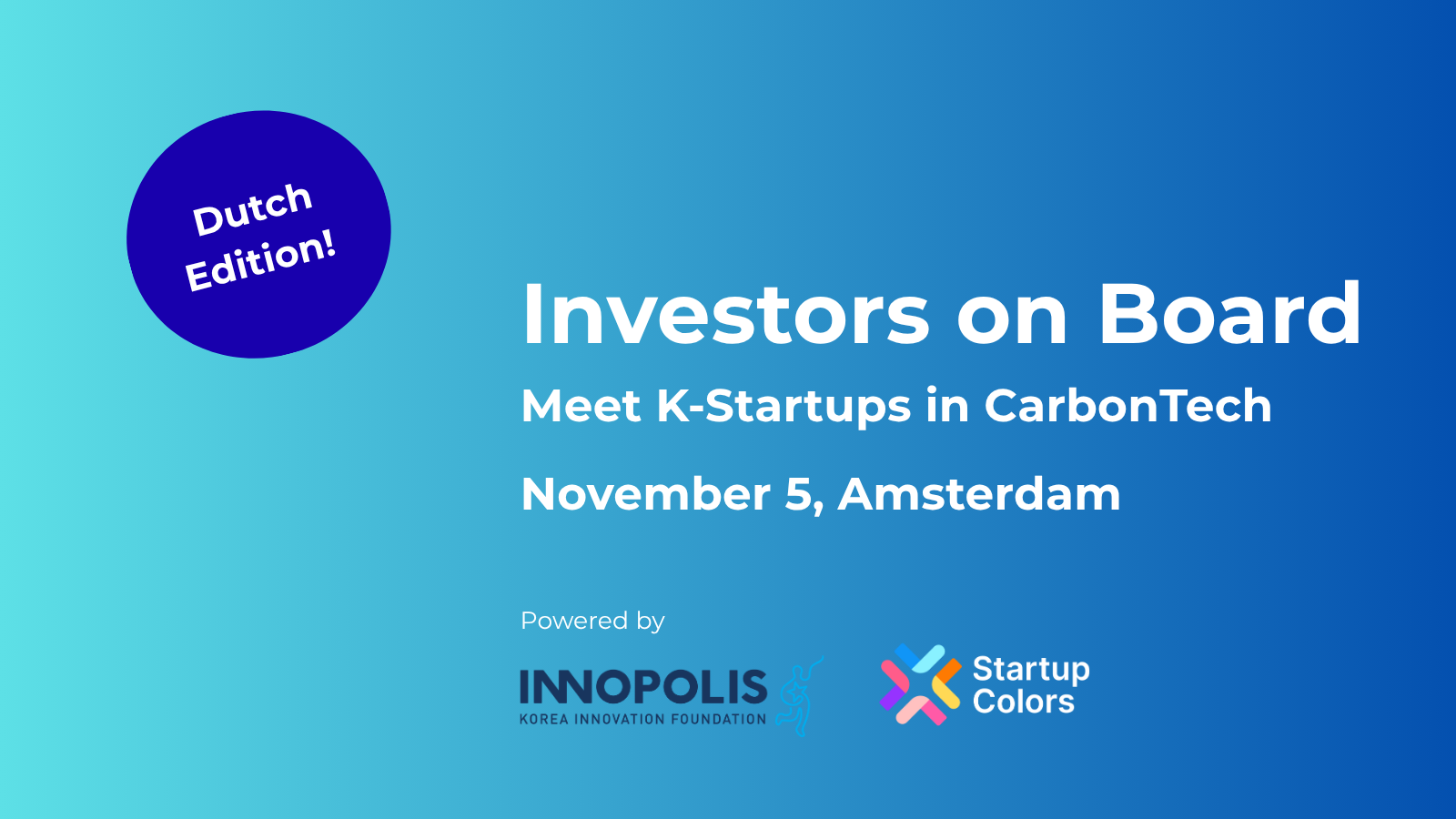 Join us at a special event powered by SuperReturn , Startup Colors and Innopolis for investors and sustainability experts. We will present ten elected Korean deeptech startups to you.