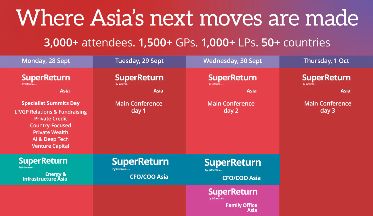 Tailored, LP-led content and networking you only find at SuperReturn Asia. The SuperReturn Series is curated by its LP Council.
