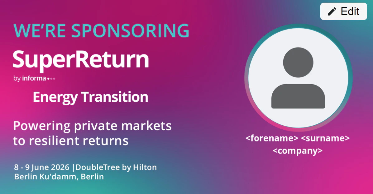[Your company name] are a proud sponsor of #SuperReturn Energy Transition! Join us at the must-attend private capital event specialising in energy transition between 8-9 June 2026 in Berlin! https://app.ingo.me/q/bu4gs