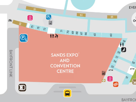 Marina Bay Sands Convention Centre can be located at 10 Bayfront Avenue, Singapore 018956. Step free entrances are available and inside elevators can be located on the Ground Floor which will take you to all levels.