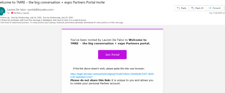 Please be on the look out for an email like this from portal@bizzabo.com for access to the Exhibitor Portal.