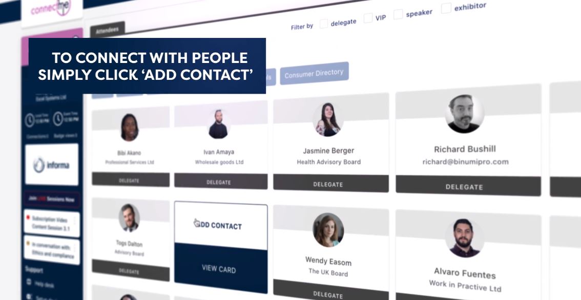 The platform is where the conference is hosted, and where the speakers, sponsors and delegates spend their time before, during and after the event.