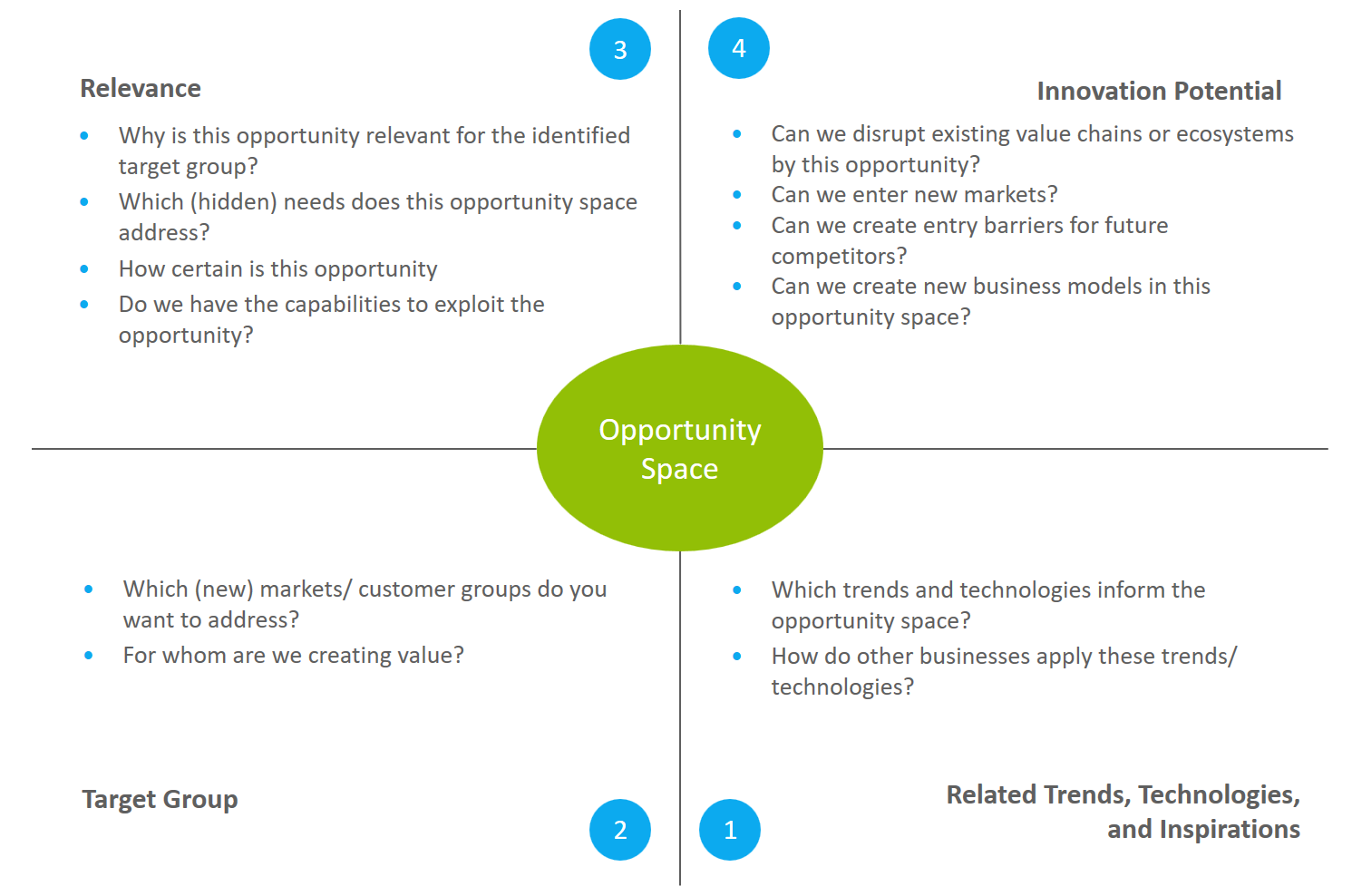 After many years in the innovation sector, I believe that before ideation there are some even more relevant activities to look at. Before starting to ideate the biggest question is: Where to ideate? What is the thing that our existing or new clients need? Call that “where” whatever you want – Blue Ocean, Opportunity Space, White Space etc. It defines a business domain in which future growth is possible or even necessary. These future business domains are the place, where collaborative ideation is required to create new products, services, and solutions.